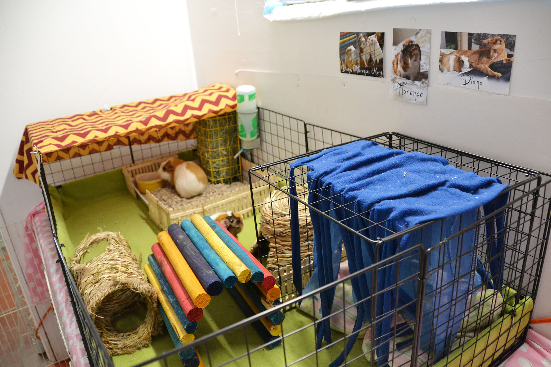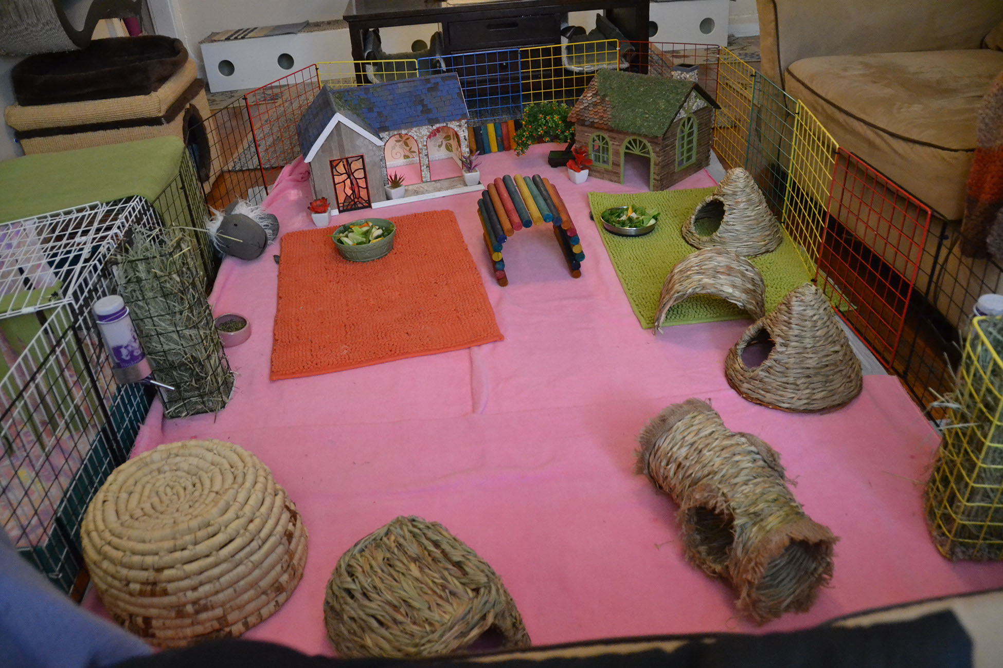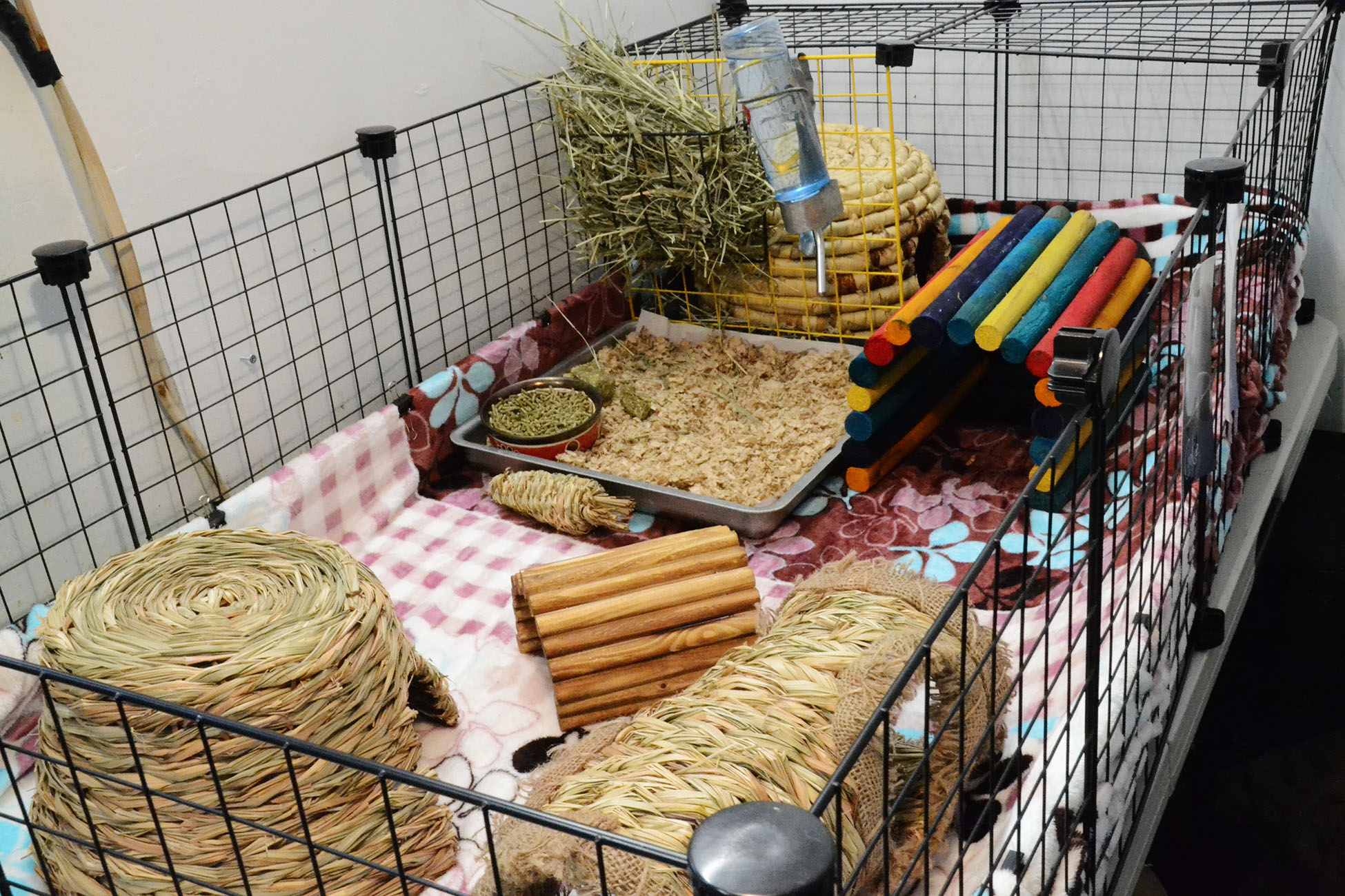 To see examples of our C&C cages, MidWest ones and our play-pens, as well as links to ALL the enrichment items our fosters use, see THIS PAGE.