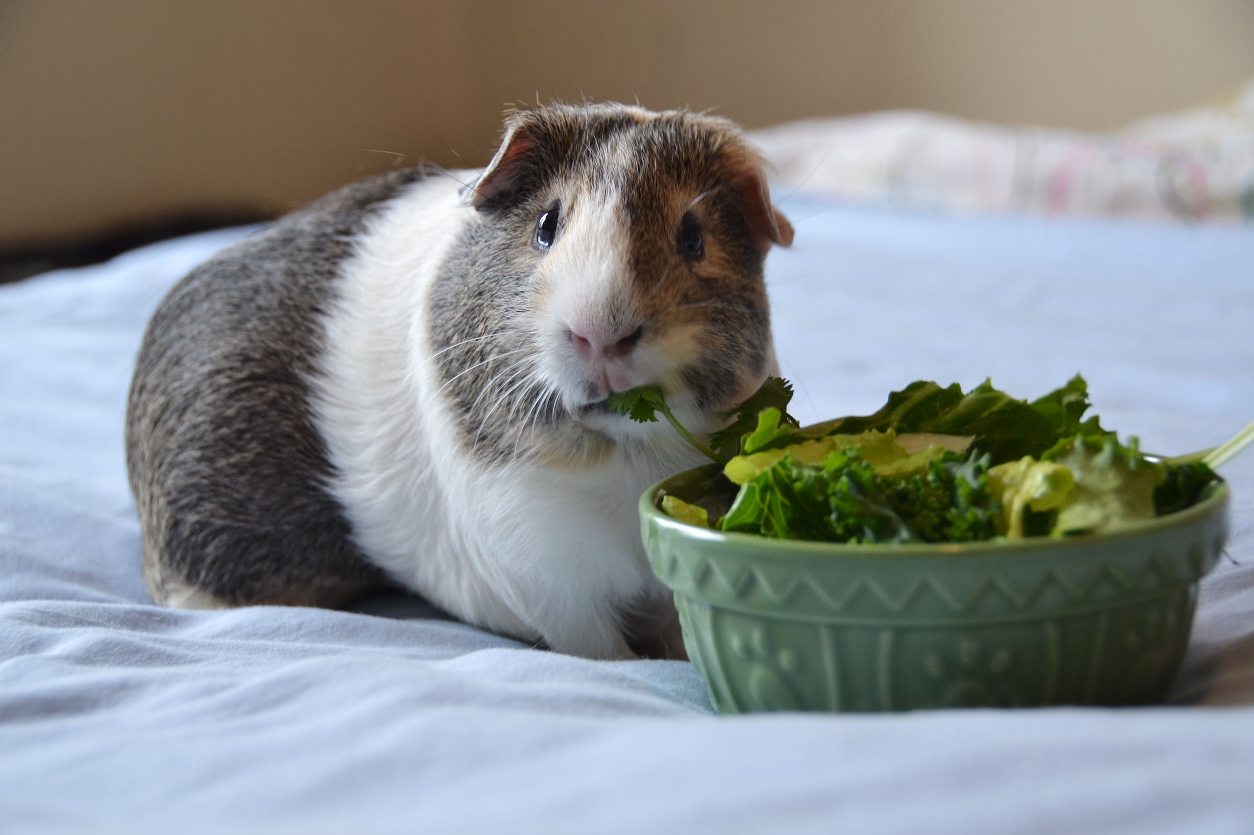 • Cavies will eat a variety of greens and vegetables. Those that are very high in calcium should only be fed from time to time, while others are appropriate for everyday feeding. These include, among others: