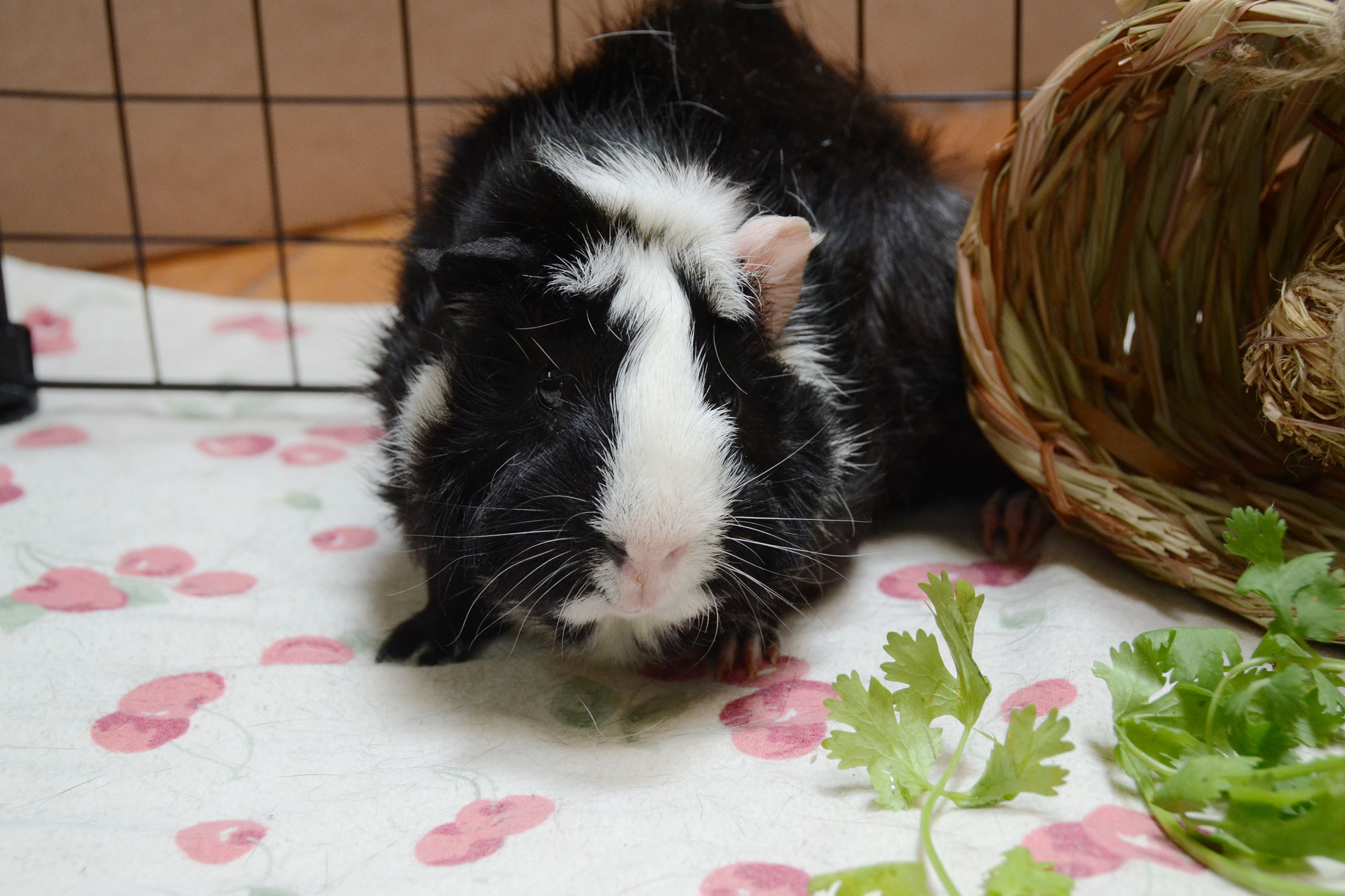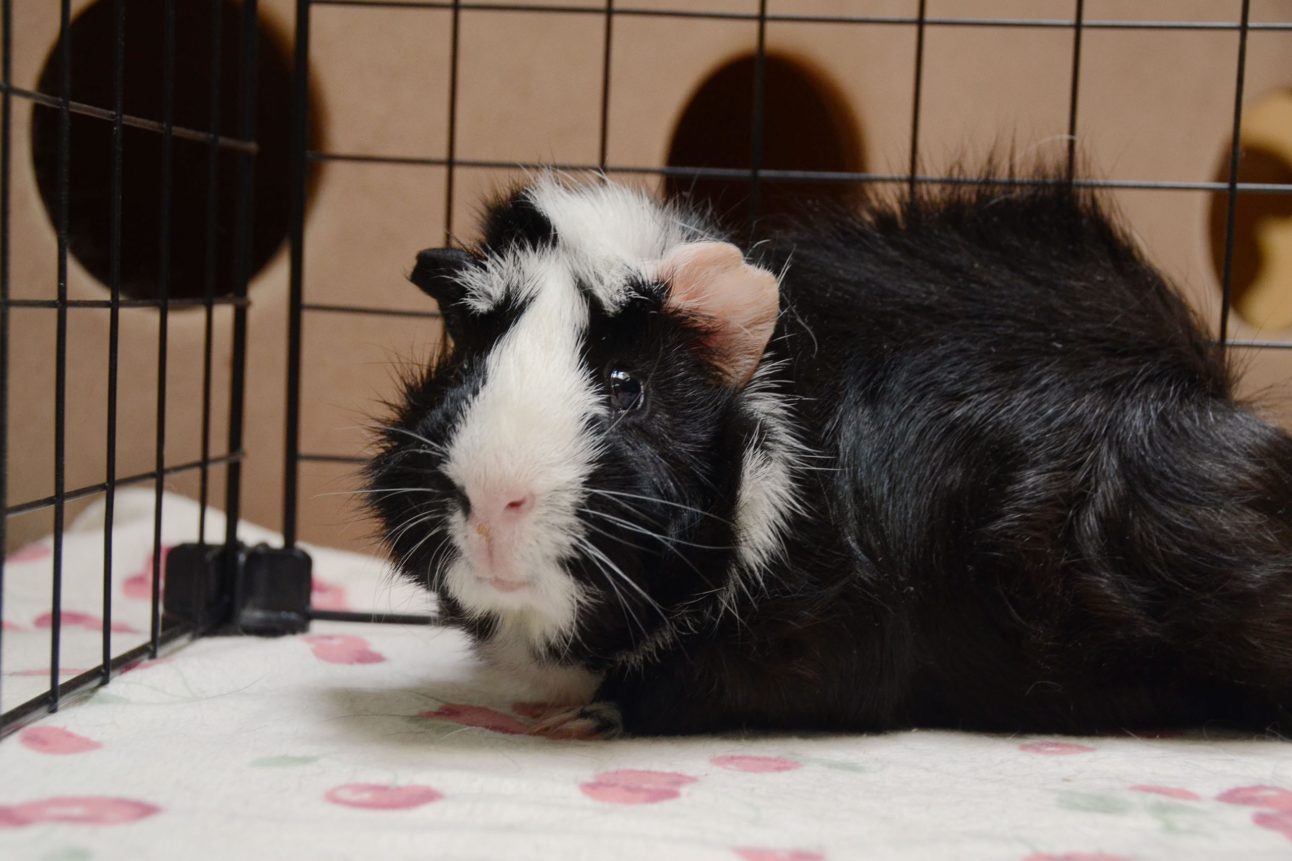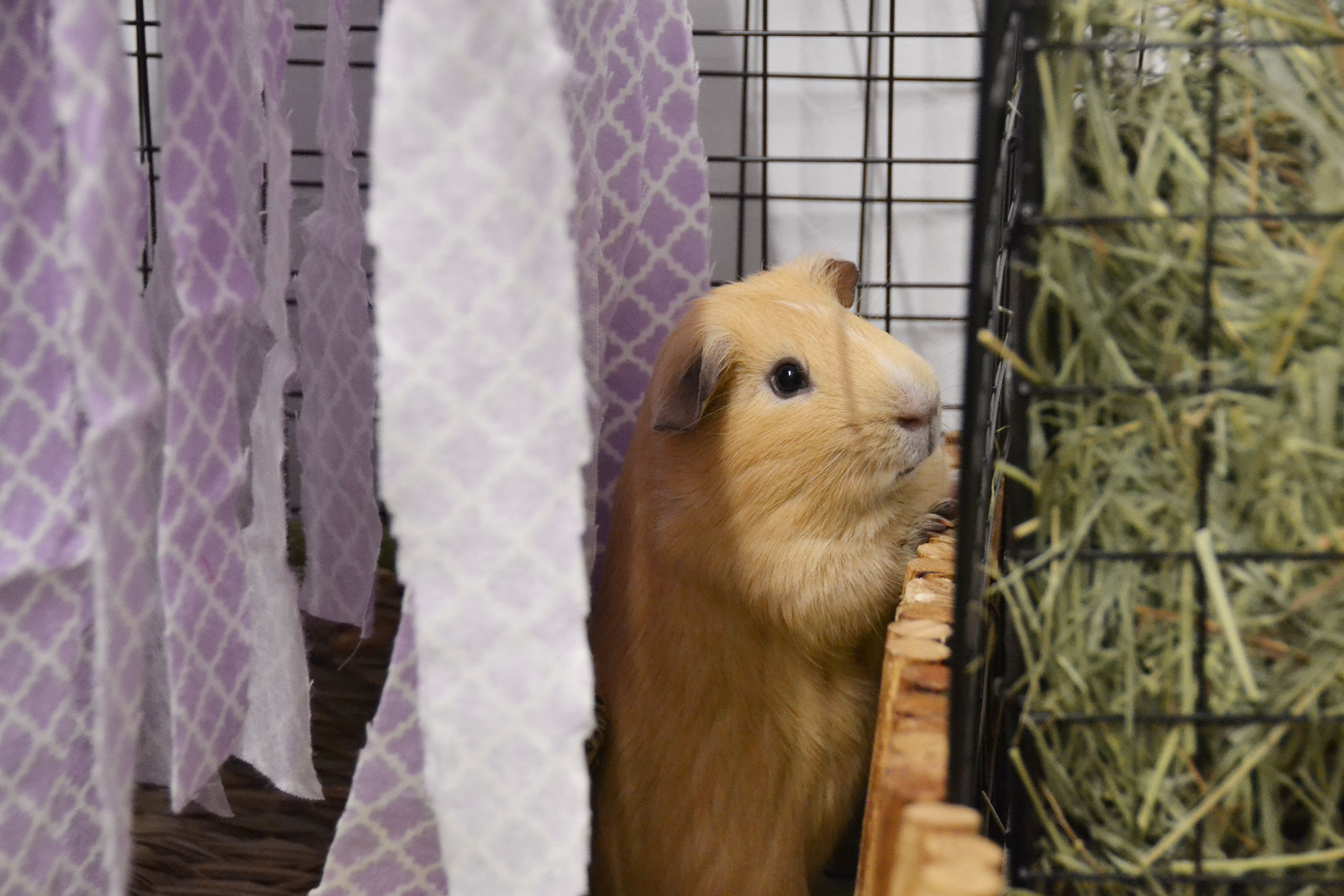 Guinea pigs are social animals that thrive in pairs or groups. Having only one guinea pig is cruel to the animal, and it may prevent the human from seeing the guinea pig’s true personality. Guinea pigs cuddle, play, and communicate with each other, which is something that a human could not possibly provide, regardless of number of hours spent with them. In fact, we never really know about their true personalities until they are living among other members of their species. Empty Cages aims to respect their natural bonds, and we will only adopt guinea pigs in pairs, or to homes that already have one or more.