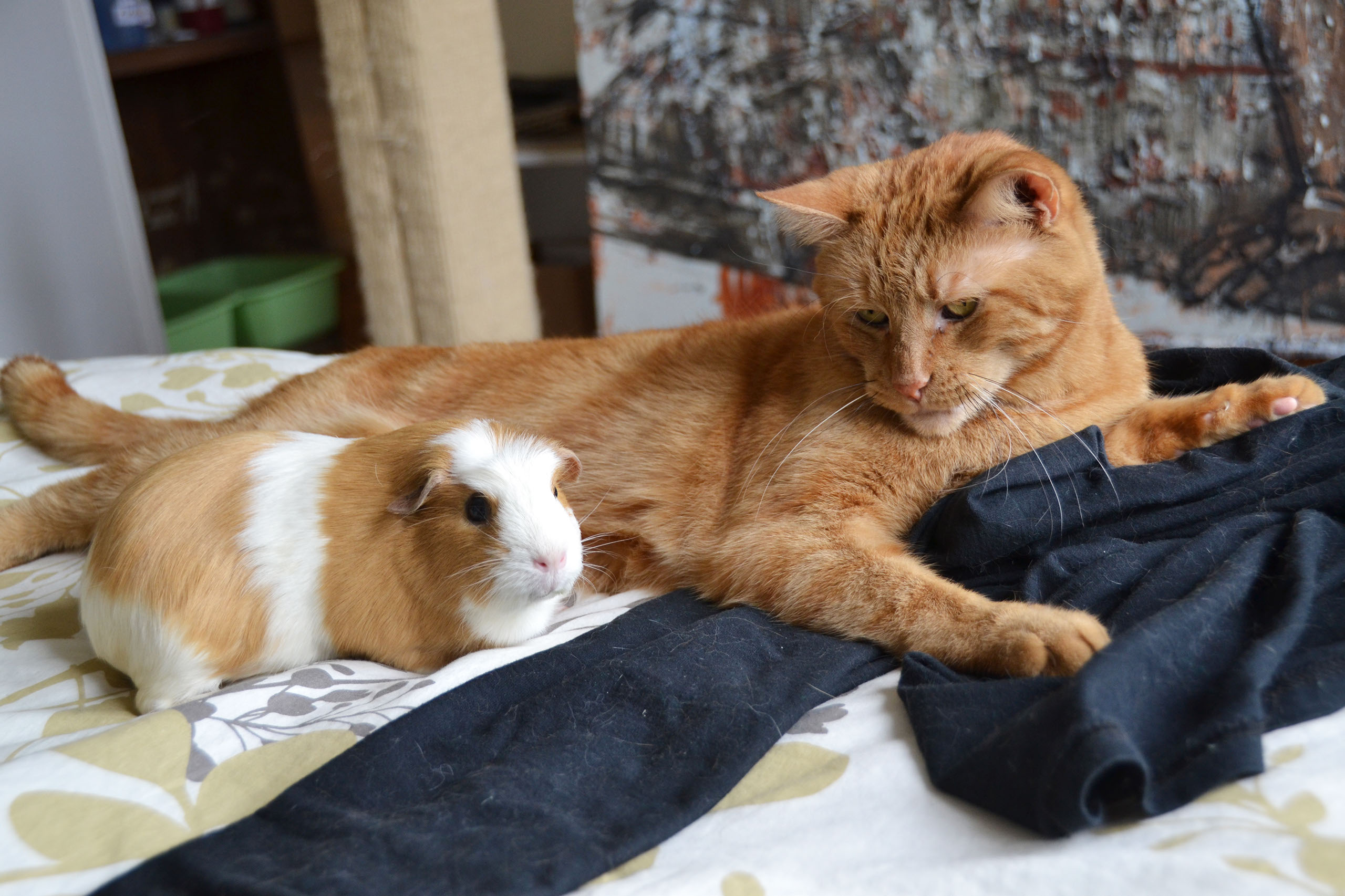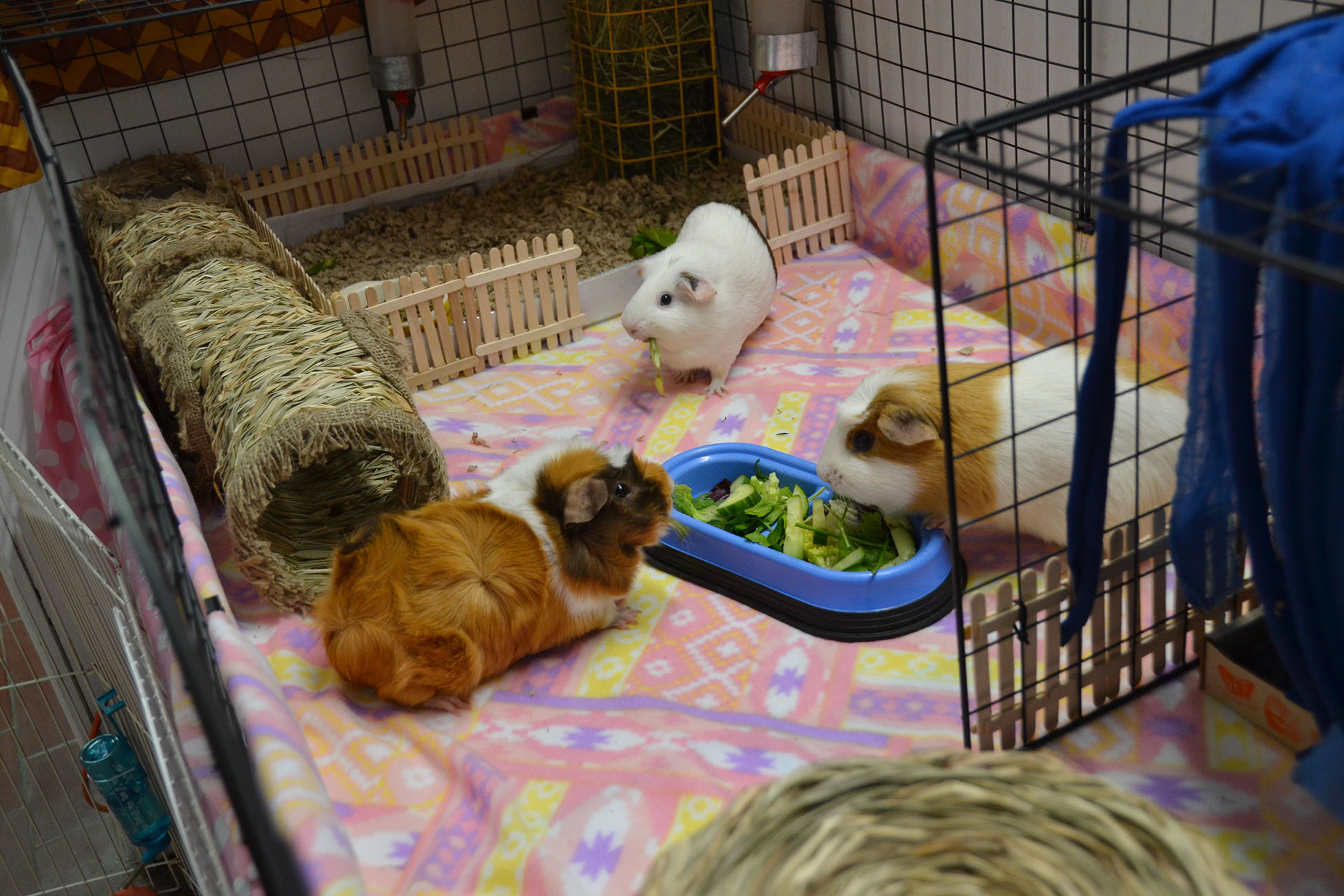 • Their first meeting should be done on the large, enclosed “neutral ground” – a space that is new to both guinea pigs, like an enclosed area of a kitchen or a bathroom.