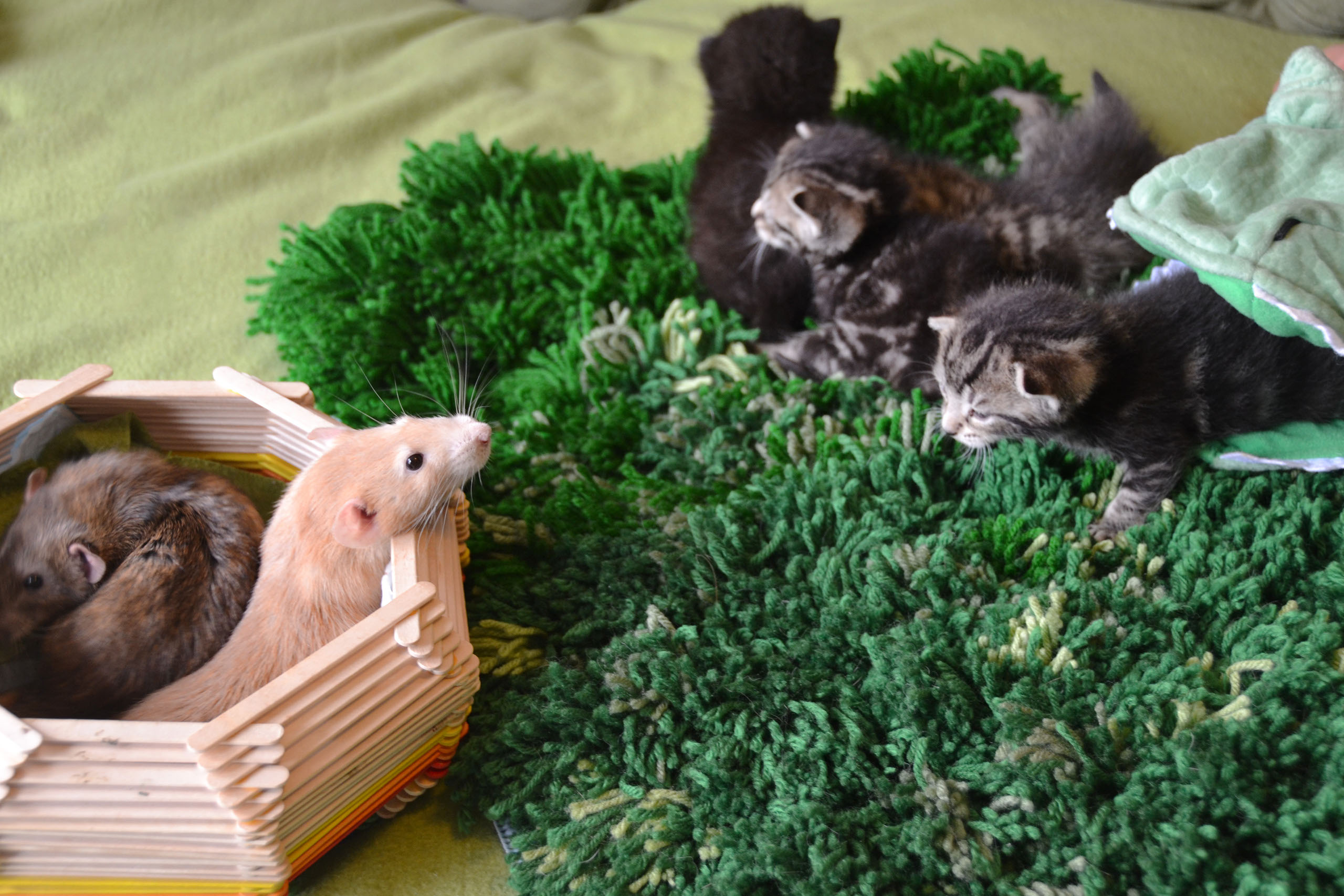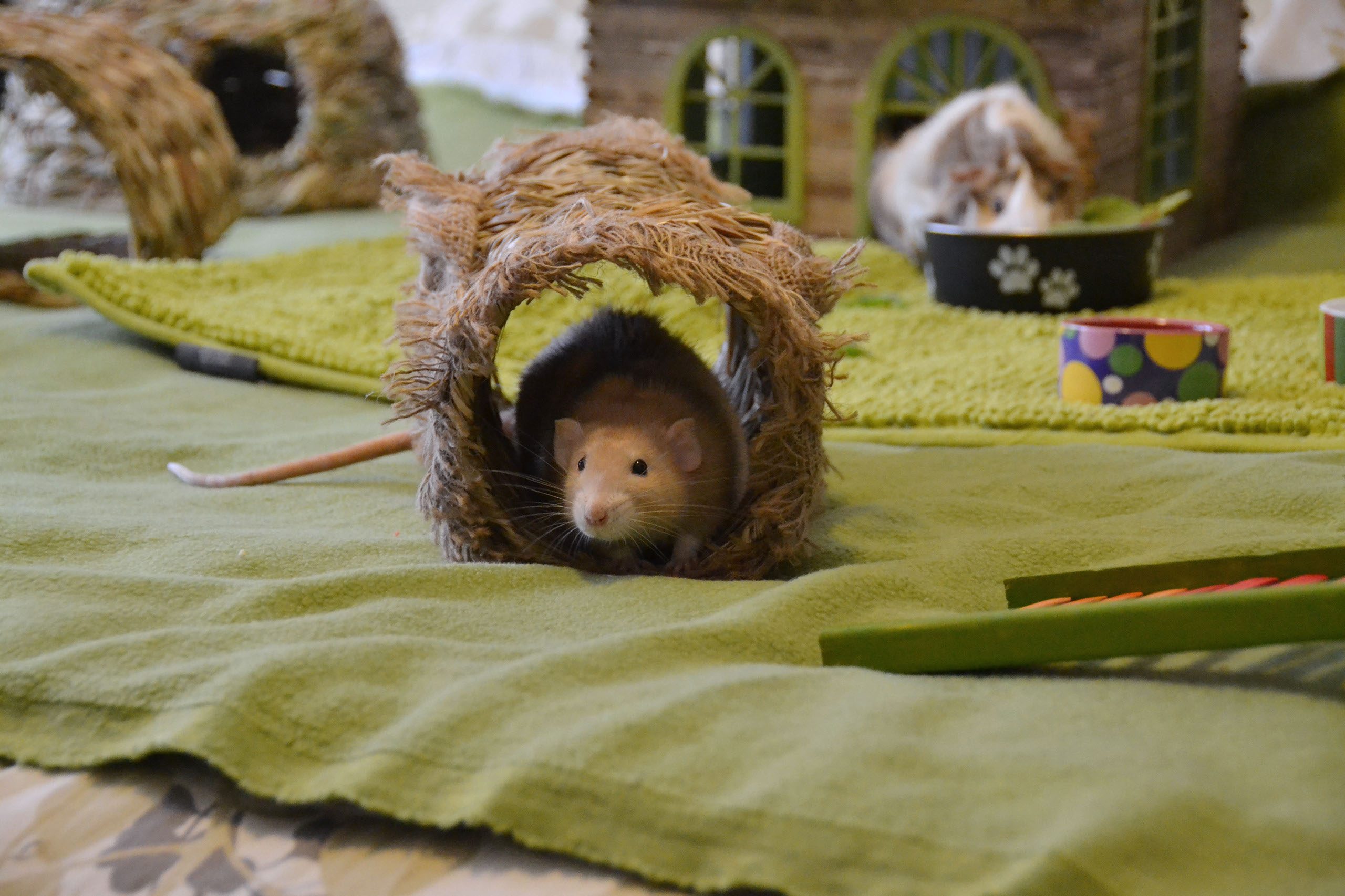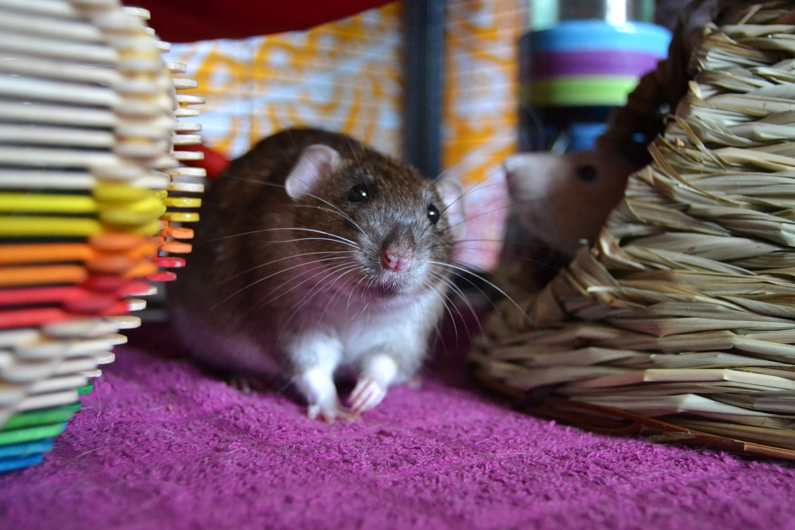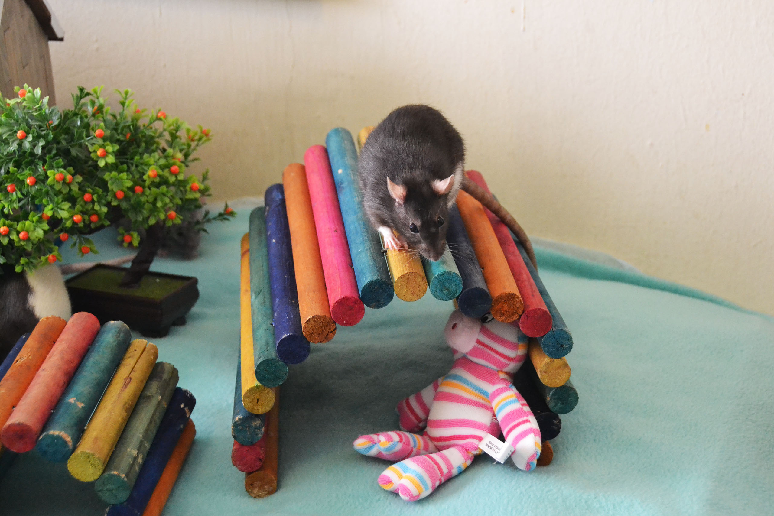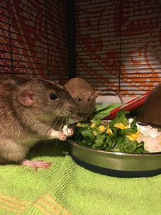 If our adopters already have companion rats, and are adopting others, at ECC we will provide for a neutral play-pen, introduction area, with plenty of enrichment and diverse ratty safe foods. Our adoption coordinators, and adopters, can see first hand how the rats get along, and adoption can be made based on whom the resident rat(s) best get along with. Our adoption coordinators can also assist the adopters with instructions, and information on what to expect onward, and how to best carry out needed post-adoption separation, as well as succeeding intros in adopter's home.