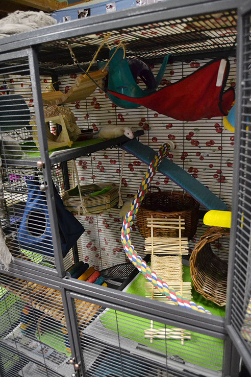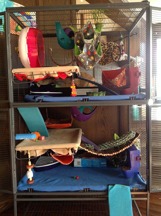 Here you can see some pictures of our current rat enclosures (as mentioned above, we prefer using Critter nation cages, and can not recommend them enough!) and the cage hideouts and enrichment, so you can get a good idea of the space needed for both inside and outside-of-cage time.