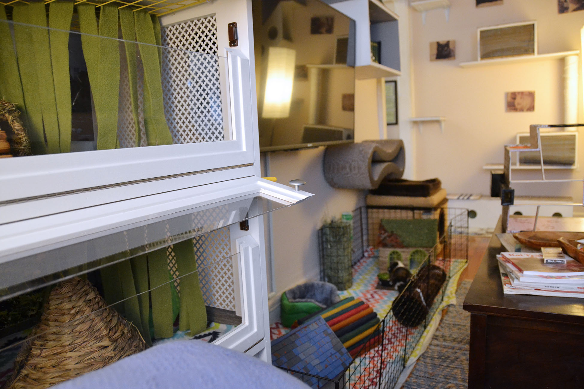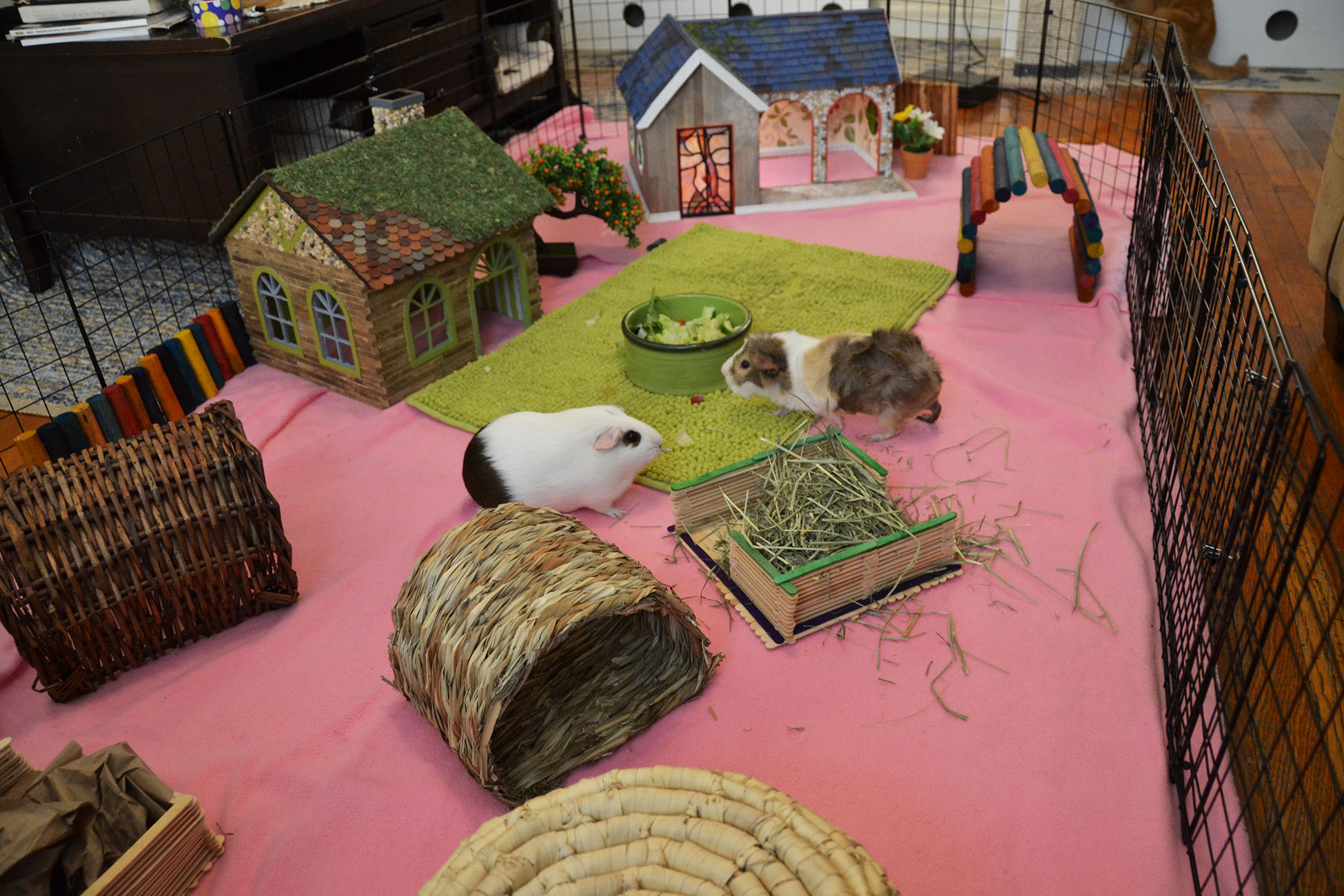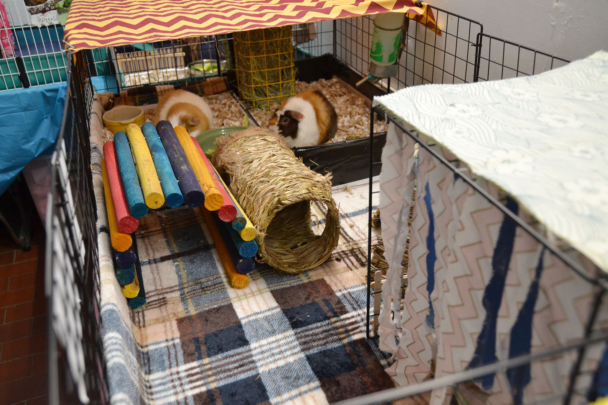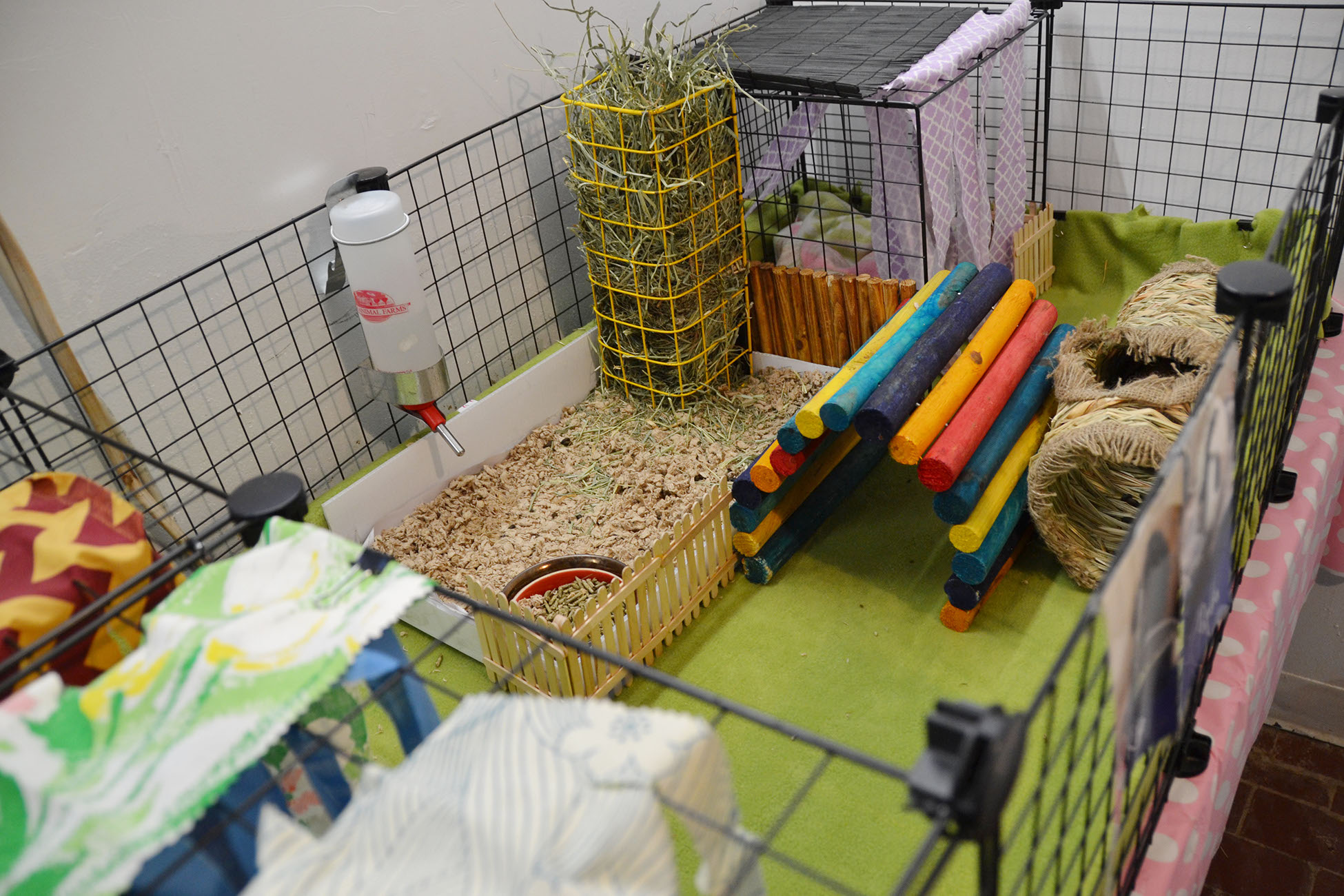To see examples of our C&C cages, MidWest ones and our play-pens, as well as links to ALL the enrichment items our fosters use, see THIS PAGE.