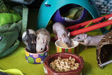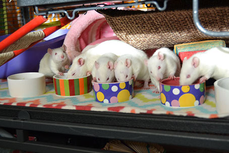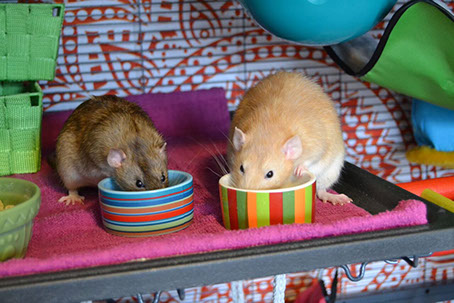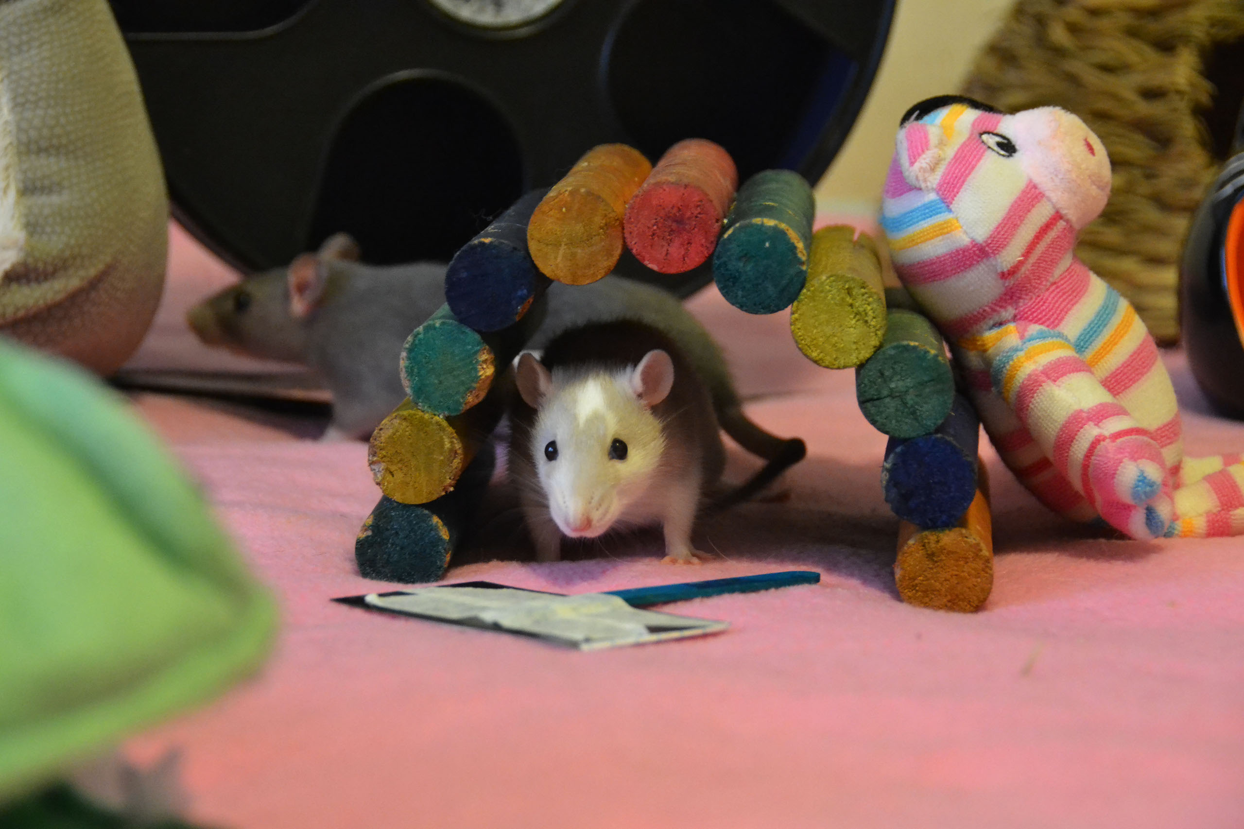 If our adopters already have companion rats, and are adopting others, at ECC we will provide for a neutral play-pen, introduction area, with plenty of enrichment and diverse ratty safe foods. Our adoption coordinators, and adopters, can see first hand how the rats get along, and adoption can be made based on whom the resident rat(s) best get along with. Our adoption coordinators can also assist the adopters with instructions, and information on what to expect onward, and how to best carry out needed post-adoption separation, as well as succeeding intros in adopter's home.