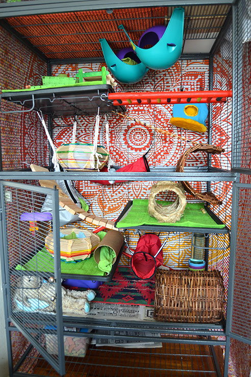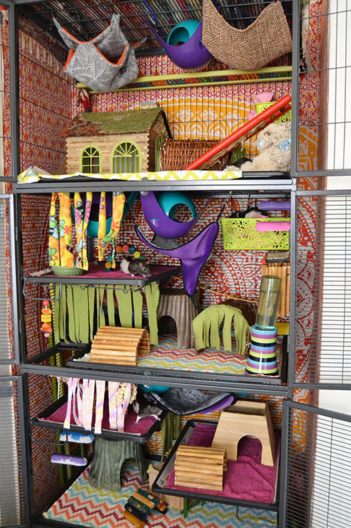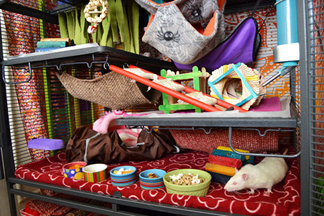 Here you can see some pictures of our current rat enclosures (as mentioned above, we prefer using Critter nation cages, and can not recommend them enough!) and the cage hideouts and enrichment, so you can get a good idea of the space needed for both inside and outside-of-cage time.
