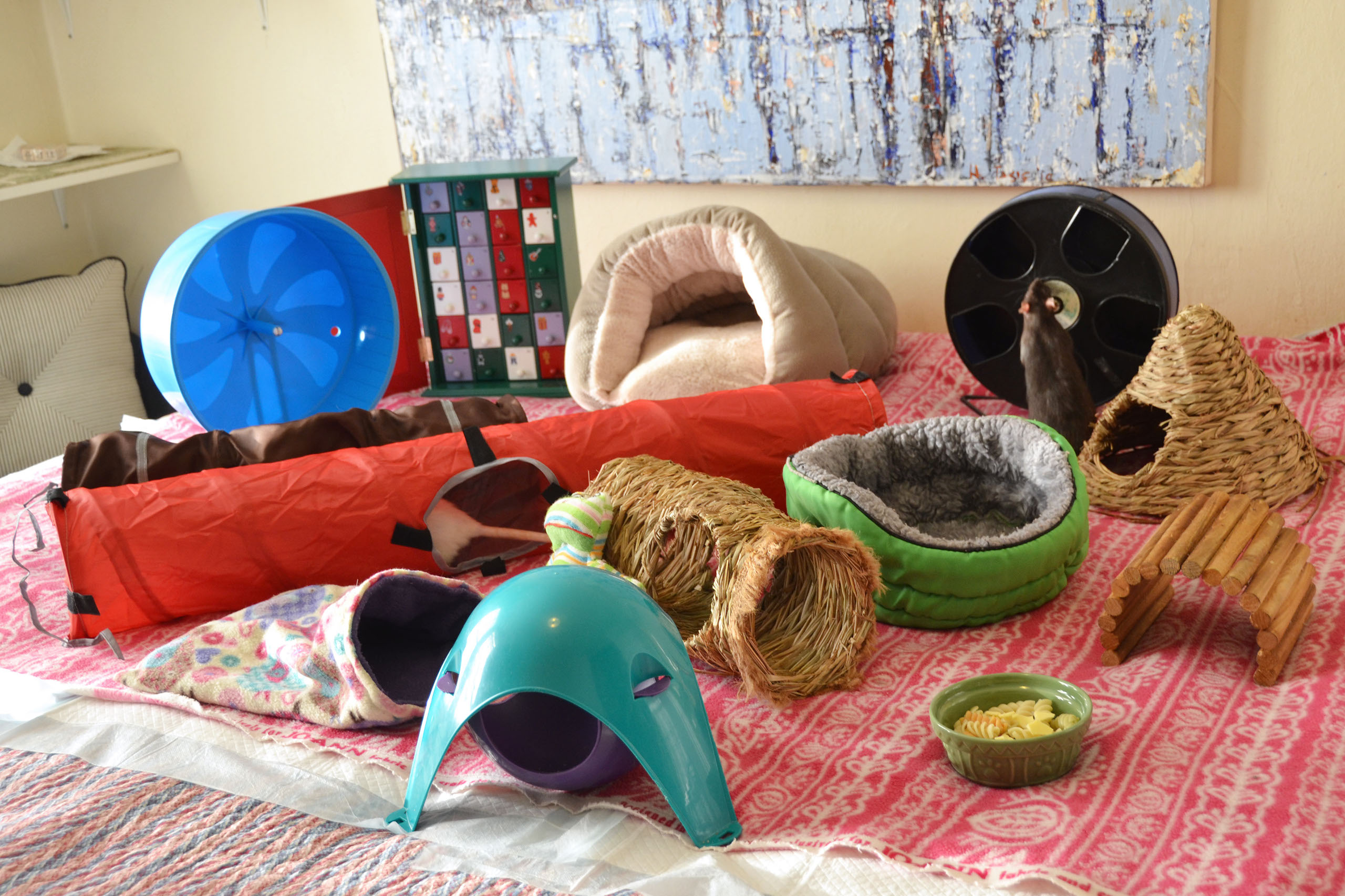 Here you can see even more of ECC foster homes' rat enclosures and play-pens, so you can get a good idea of the space needed for both inside and outside-of-cage time.