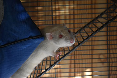 Please do NOT use wood shavings as bedding! Wood shaving have volatile oils that are often the source of respiratory problems in rats. Given how easy it is to train rats to use the litter box, we recommend using newspapers covered with fleece for covering the cage bottom and different levels. While some ratty lovers and guardians have bedding on the whole lower level of the cage, we find that placing a litter box filled with Yesterday's News cat litter and a pee rock (any mid sizes smooth surface rock will do!), in one corner (secluded corners works best!), and having the rest of the cage levels be covered with newspapers and fleece, promotes the idea of a restroom, allowing for the rest of the cage to be much cleaner, which will also help maintain the tidiness in rats themselves.